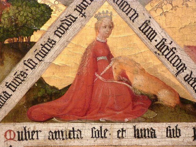Unicorns were depicted in many manuscripts and paintings throughout the Middle Ages, including this French drawing of the interior of a palace: "Les Magnificences publiques du carrosel fait en la place royale de Paris, Le jeudy V avril M.DC.XII et jours suyvans." (1612) (Image 3 and 4)